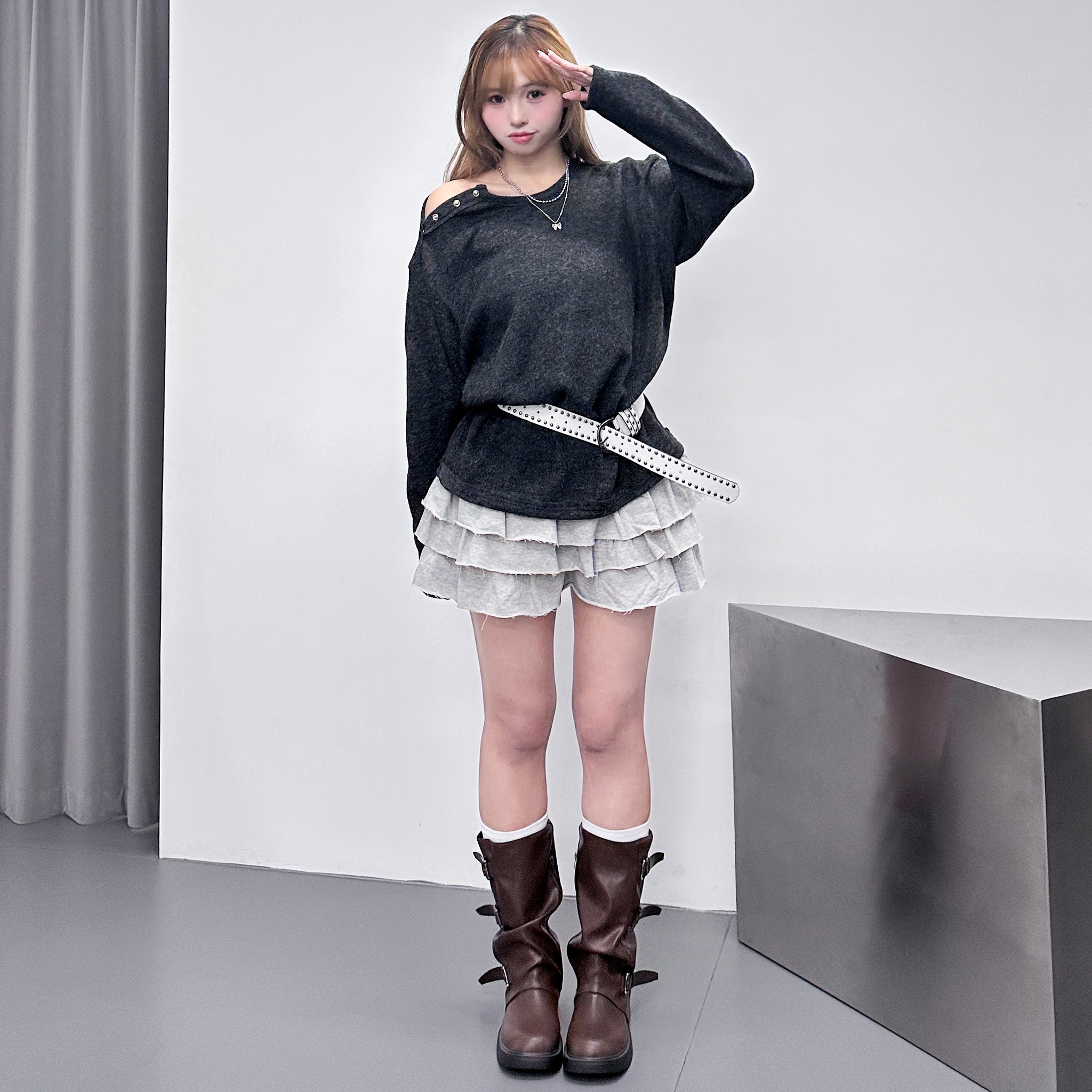 [UNISEX] 右肩啪啪鈕霧面毛茸茸長袖/ 2色