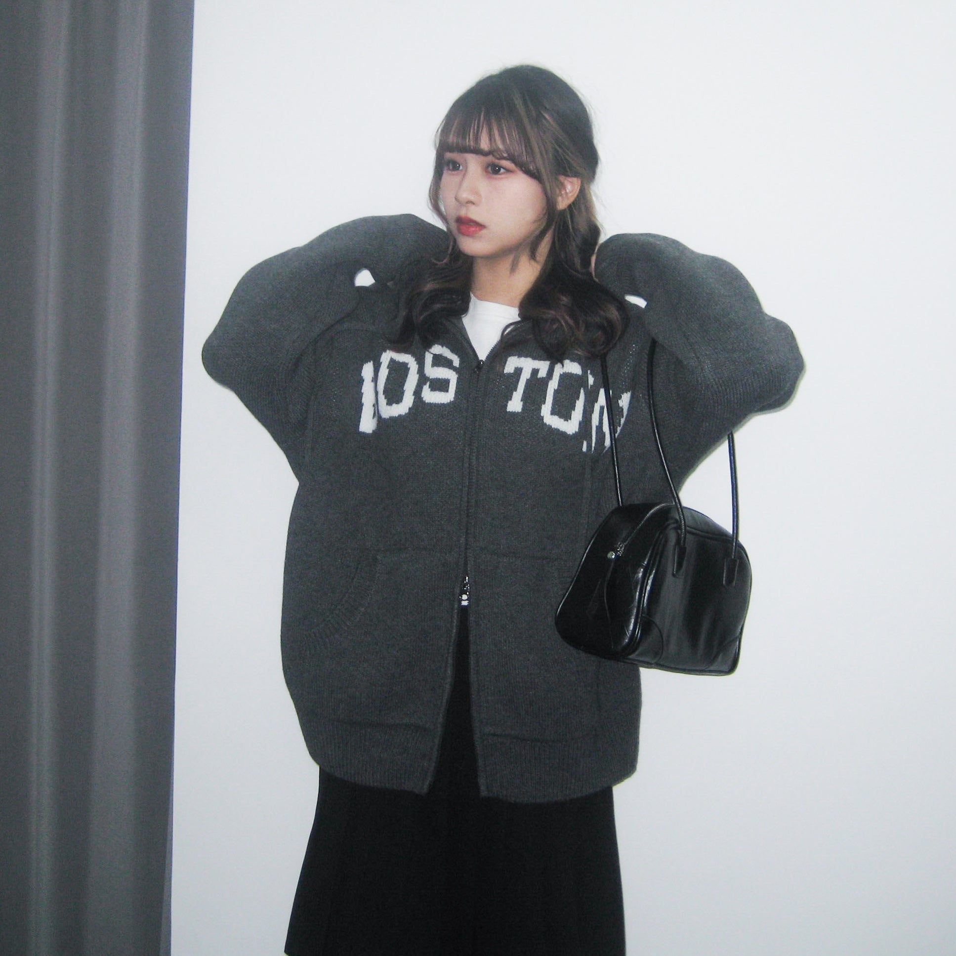 [UNISEX] BOSTON 2WAY OVERSIZE HOODED ZIP-UP KNIT/ 4色