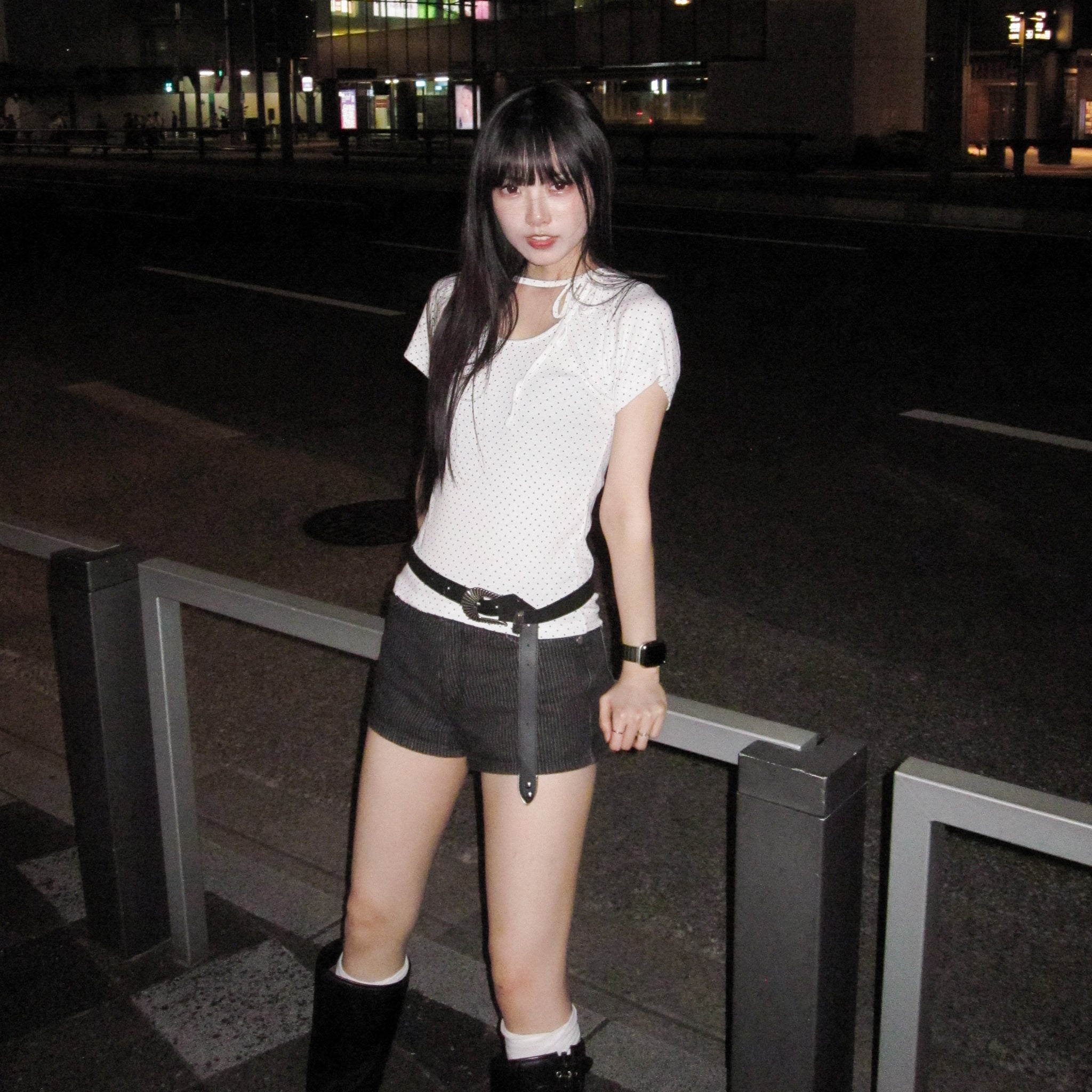 DOT DOT RIBBON SEMI CROP TOP/ 2色