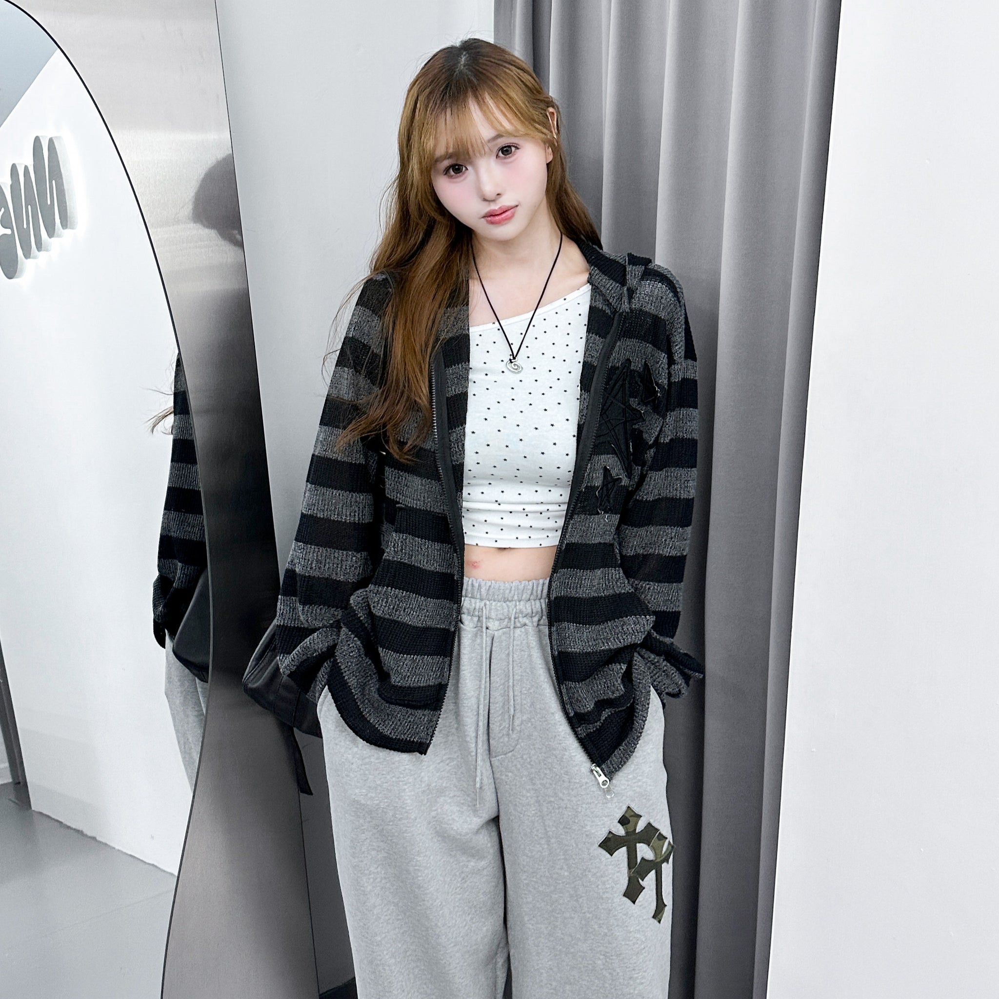 [UNISEX] 星星橫間半透帽款外套/ 2色