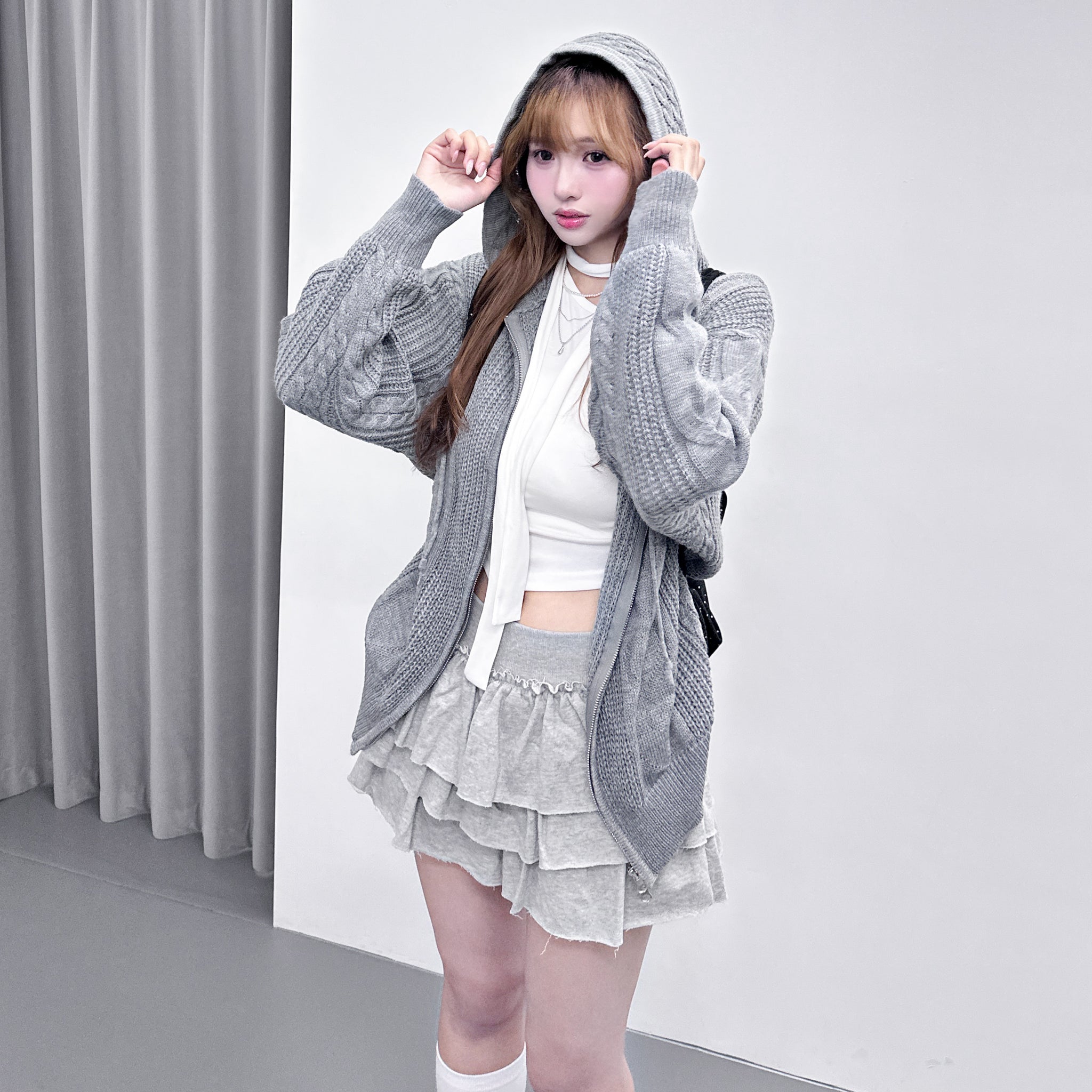 HEART CABLES ZIP-UP HOODED KNITWEAR/ 2色